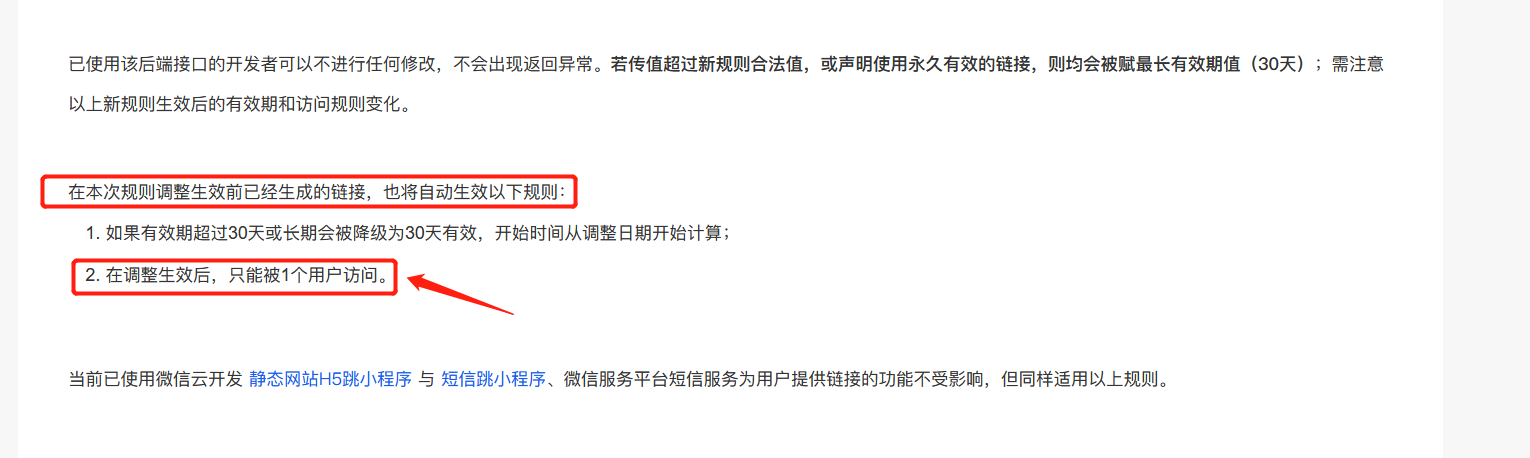 1、规则调整前已生成的链接,4.12号多个独立用户点击该链接仍可正常启动小程序。