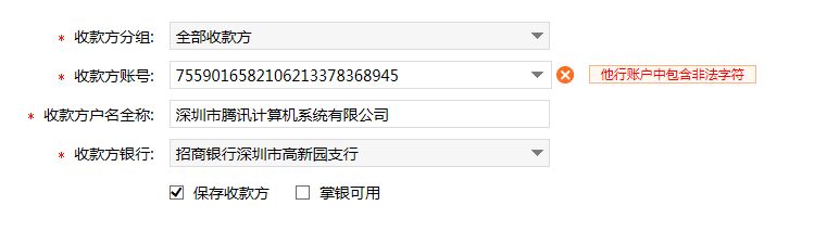 用注册时填写的正确我方公司账号付款,收款方也是腾讯提供的25位账号,没有错。金额也是按照提示支付。
