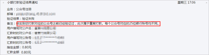 1、打款验证失败提示:对公信息和注册时填写的不一致