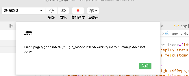 引用一个好物推荐插件,真机调试出现问题,提示share-button.js文件不存在,要怎么解决?