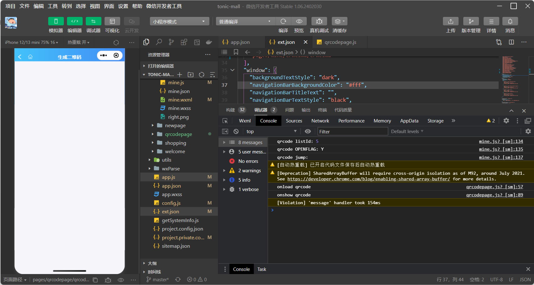 代码发布后,体验版,点击 我的二维码,不跳转也不报错