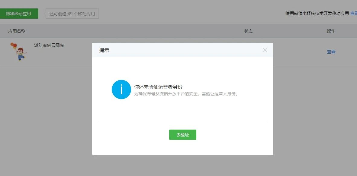登录微信开放平台提示”你还未验证运营者身份“,点去验证又提示”发生错误,请点击返回首页“,返回首页又提示未验证