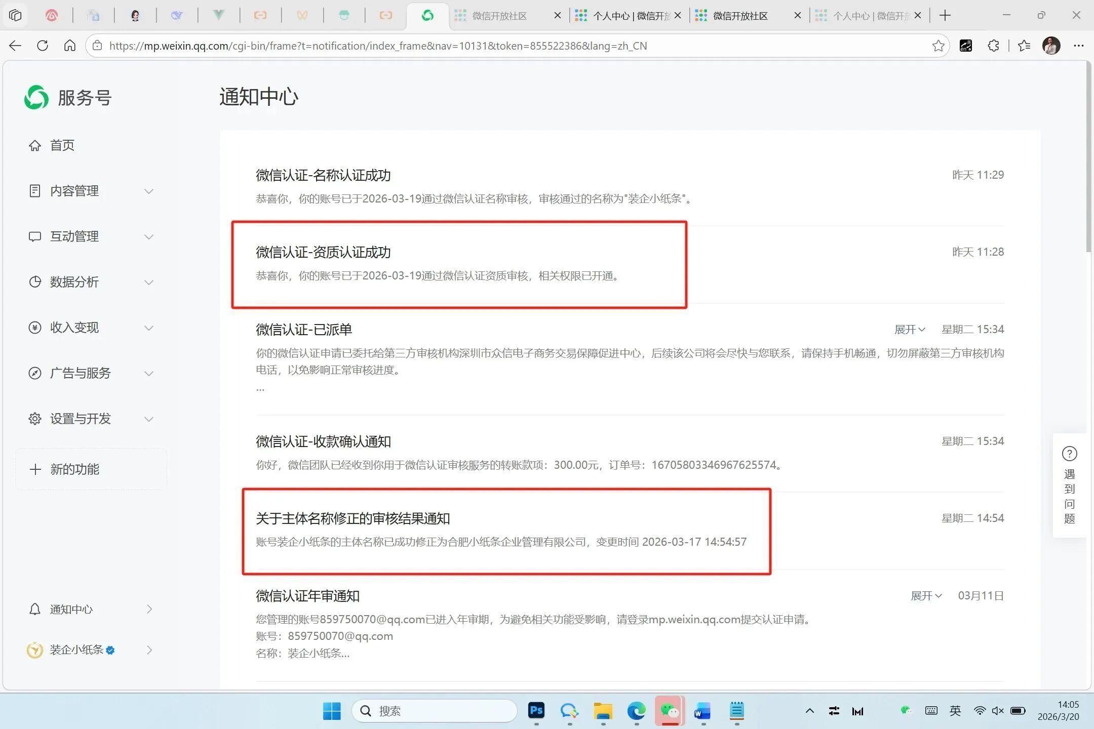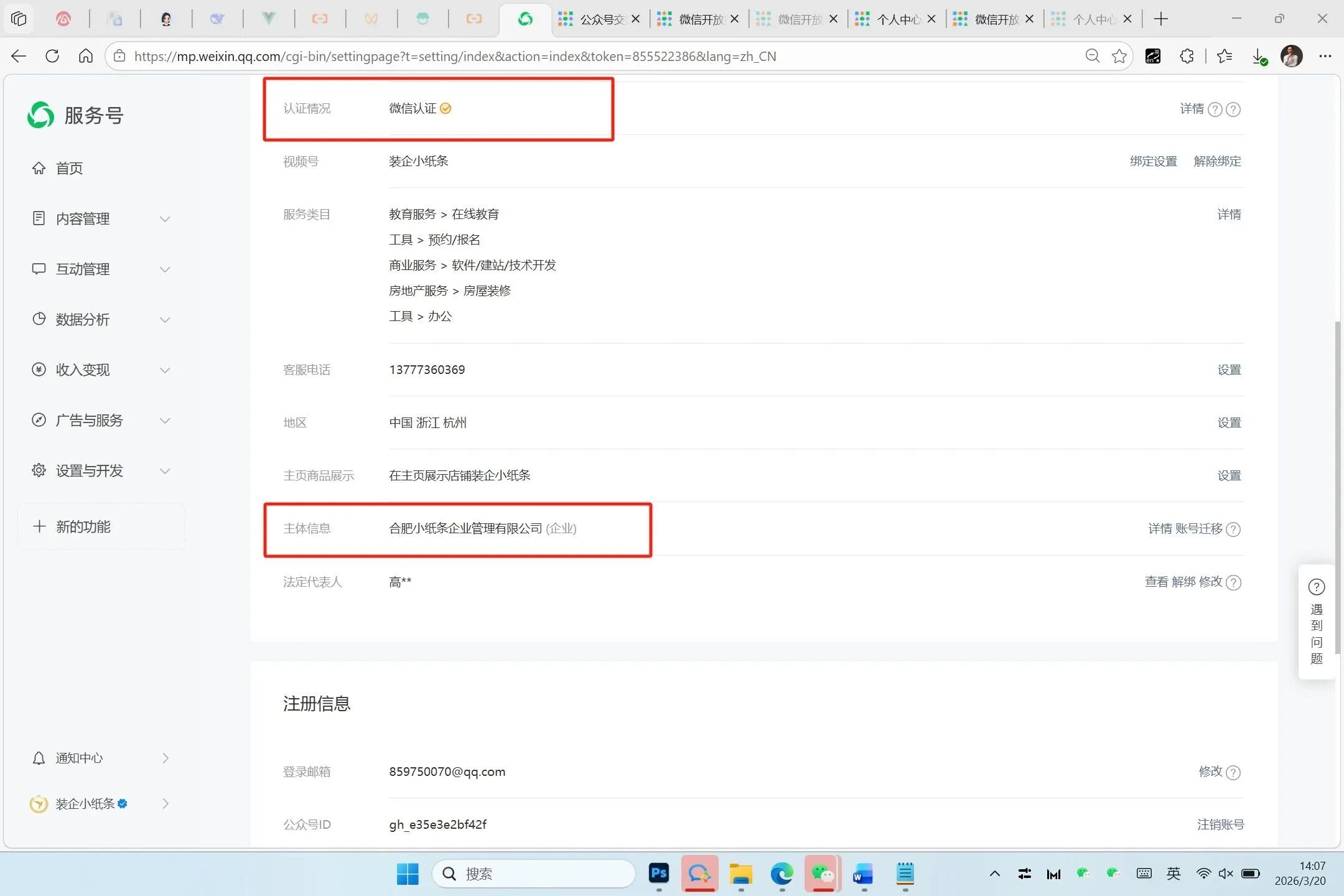 公众号主题已由个【体工商户】升级成企业5天,公众号认证也已经通过了3天了。可服务号主体还是显示个体工商户,怎么解决?服务号主体未变更过来,还是显示的原来的个体工商户信息,导致我在用服务号辅助认证视频号的时候,显示“个体工商户不支持辅助认证”,我已经清理了手机微信缓存,也退出微信重新登陆了,也把微信登陆到另外的手机上试了,都不行,还是显示【个体工商户不支持辅助认证】请帮忙解决下,谢谢~我把以前的和现在的营业执照和个转企证明,和跨省迁移的证明都发给你了,麻烦给解决下,谢谢,