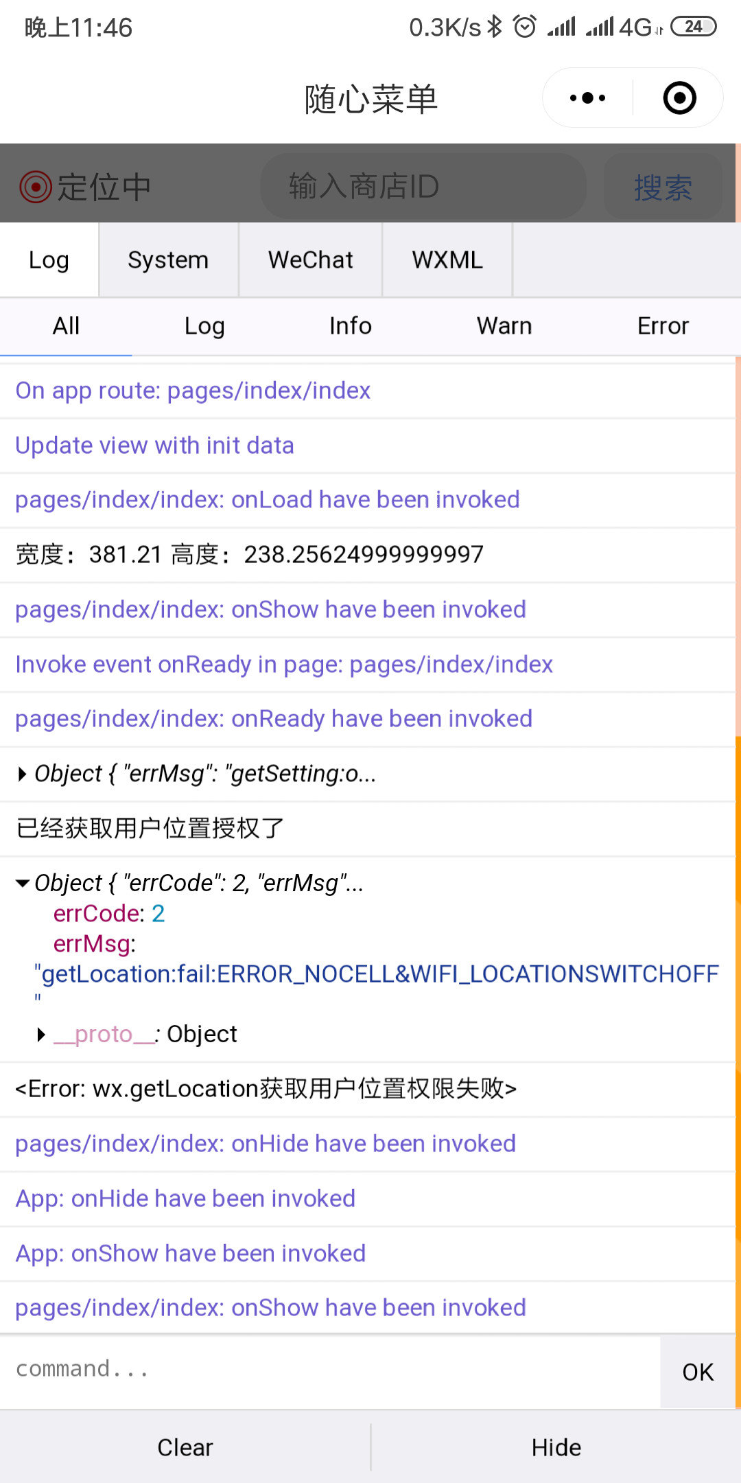 已经授权情况下:获取位置信息:errCode:2 getLocation:fail:ERROR_NOCELL&WIFI_LOCALTIONSWITCHOFF