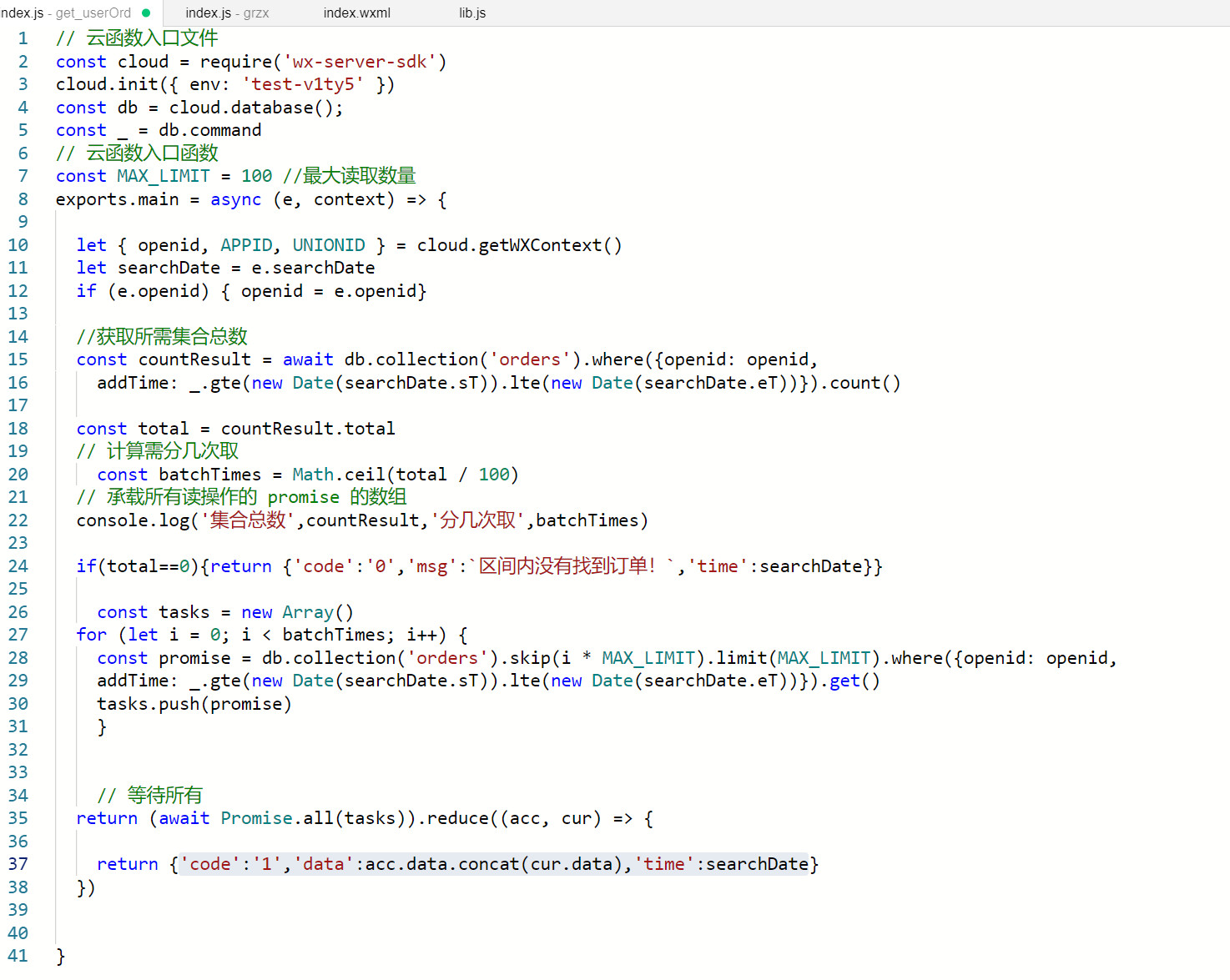 下面补上云函数的完整代码:
