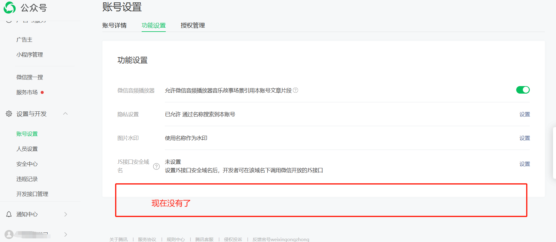 一般是已完成微信认证的服务号后台才会有「网页授权域名」配置入口,你的是公众号(即原订阅号)。