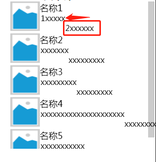 是这里开始的位置是在1xxxxx之后的,想以名称1的相对位置定位,从而保证两行对齐