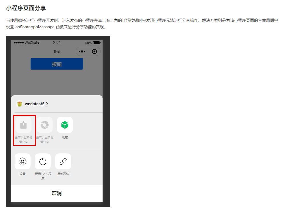 按照文档在页面加了onShareAppMessage,仍然显示当前页面不可分享,哪一步设置的有问题?