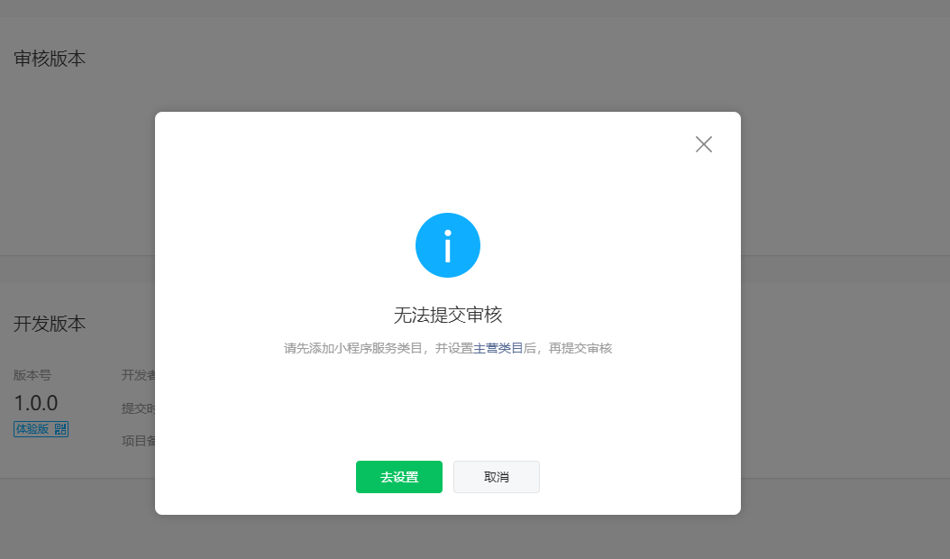 小程序已配置了服务类目-主营类目,提交审核的时候仍然提示 无法提交审核,请设置小程序服务类目