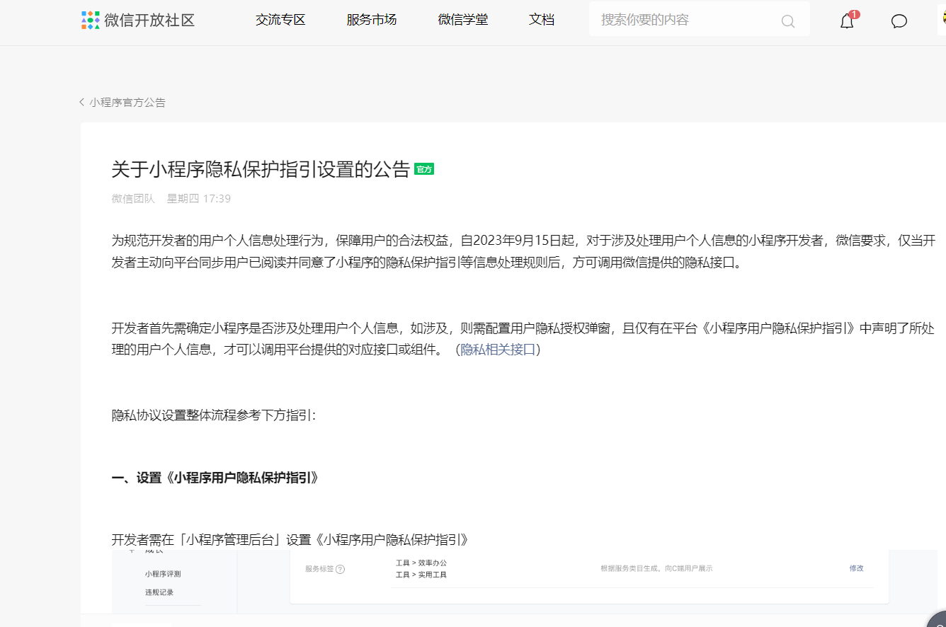 2023年9月15日之前,此功能逻辑只对开发版/体验版生效,开发者请尽快进行隐私弹窗适配、发版。2023年9月15日之后,将对正式版生效,详情可见《关于小程序隐私保护指引设置的公告》。