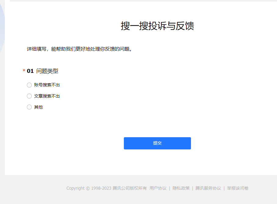 搜一搜反馈下https://wj.qq.com/s2/11422134/f23c/