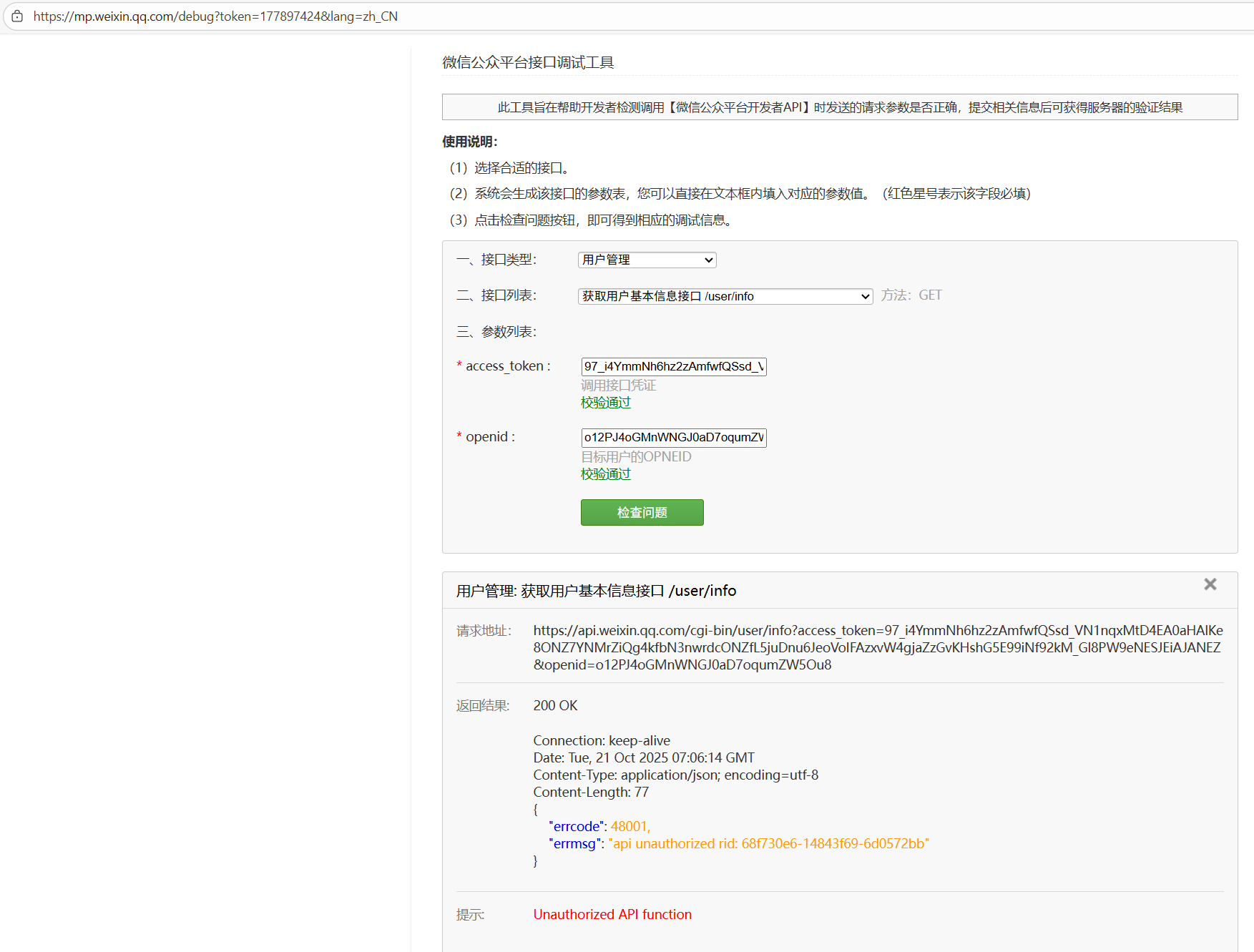 errmsg: api unauthorized rid: 68f730e6-14843f69-6d0572bb