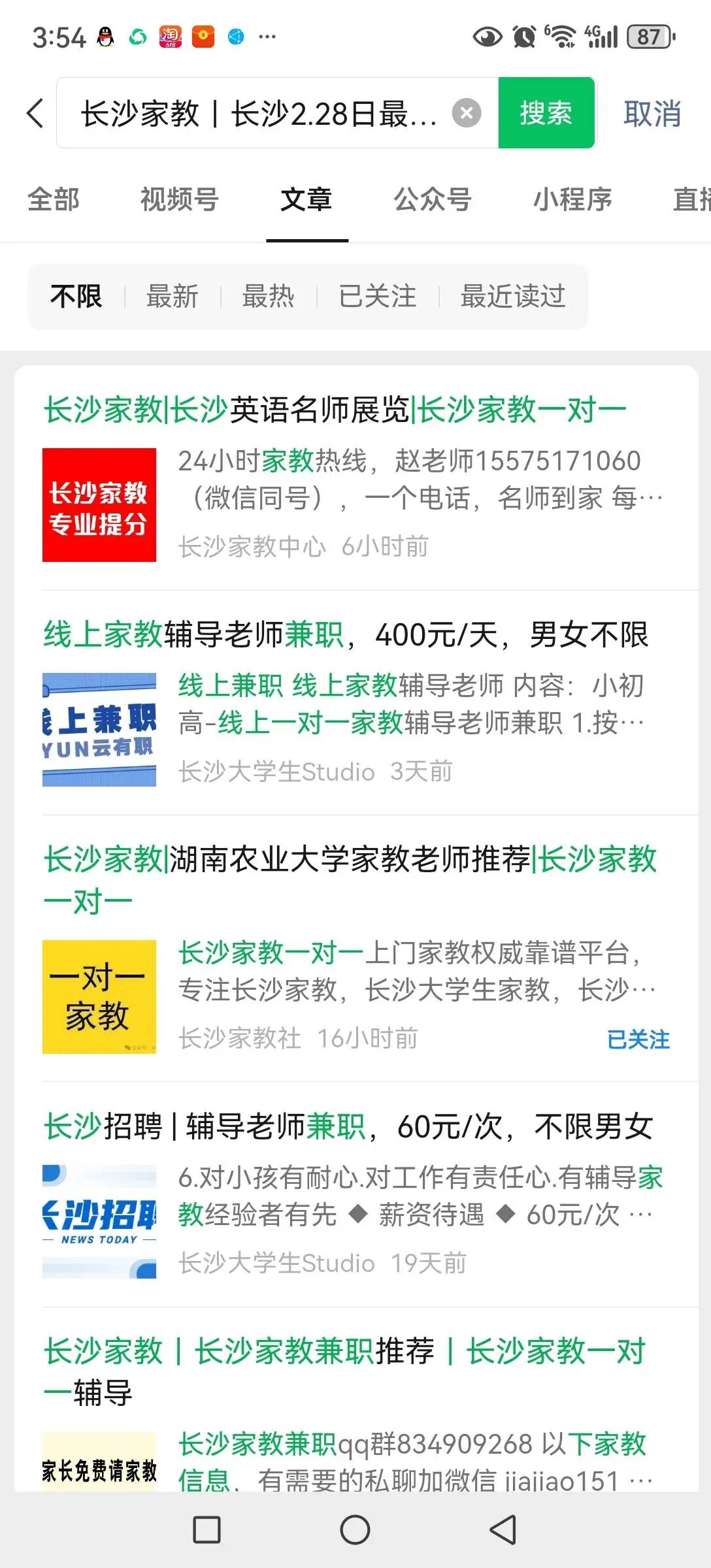 【今天是我申诉的第1天,希望能够得到管理员的帮助】 微信公众号:长沙学霸家教 原始ID :gh_dbf279fb2837 申诉时间:2024年6月16日 问题反馈:微信公众号全部文章无法被微信“搜一搜”正常检索 示例文章:长沙家教|长沙2.28日最新线上线下家教兼职信息|长