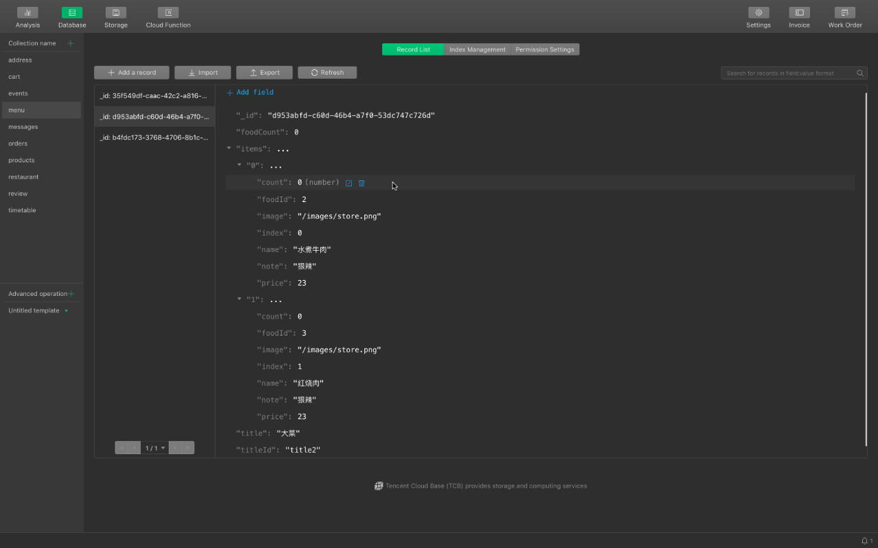 菜单小程序使用云开发的功能
