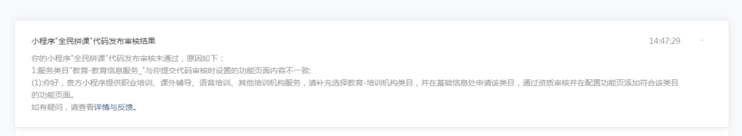 我们的小程序是针对教育培训机构的招生而打造的工具类小程序,主体不是教育服务机构,为什么会提示这个呢,而且之前一直都没问题,就这两天开始提示,能帮忙解释下吗