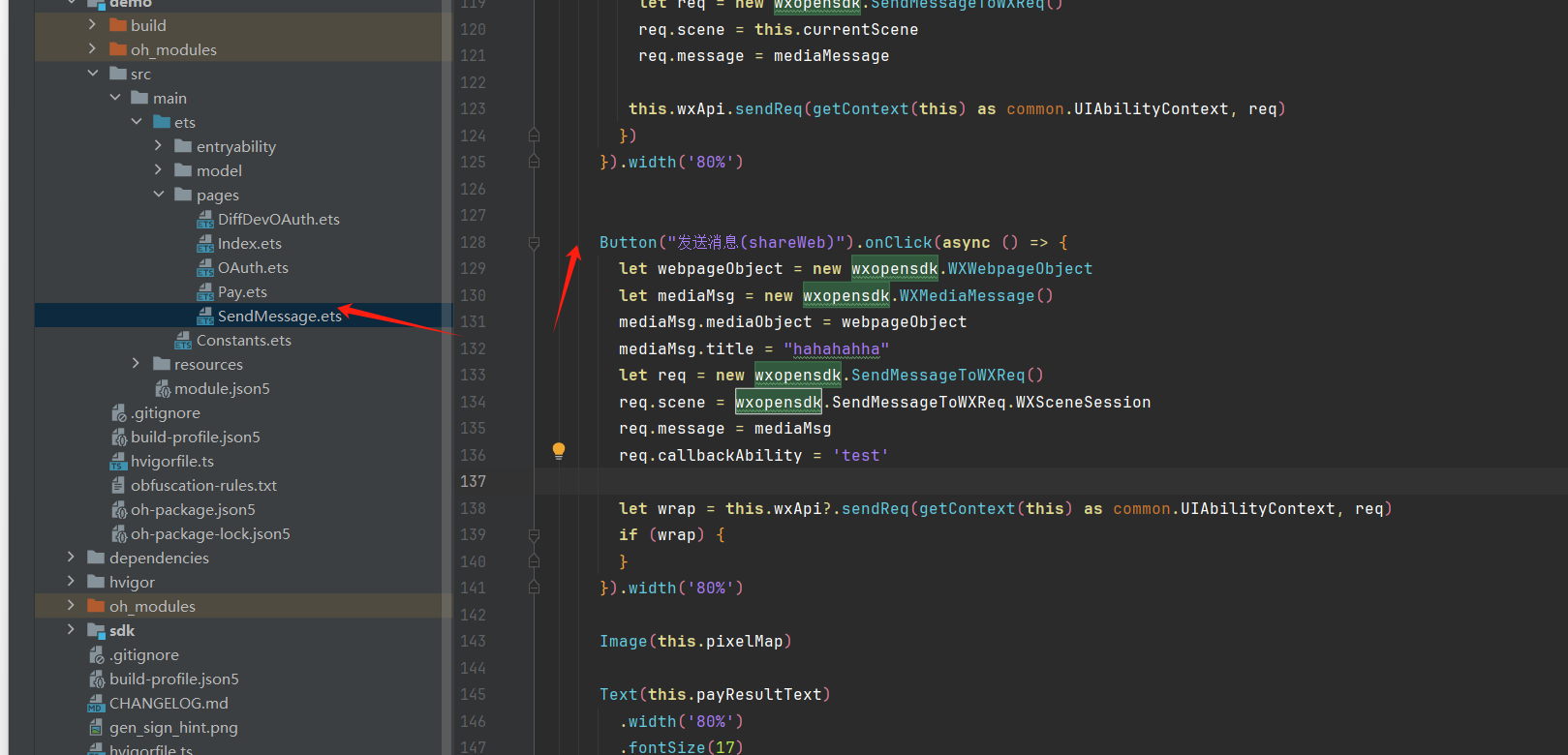 let wrap = this.wxApi?.sendReq(getContext(this) as common.UIAbilityContext, req)