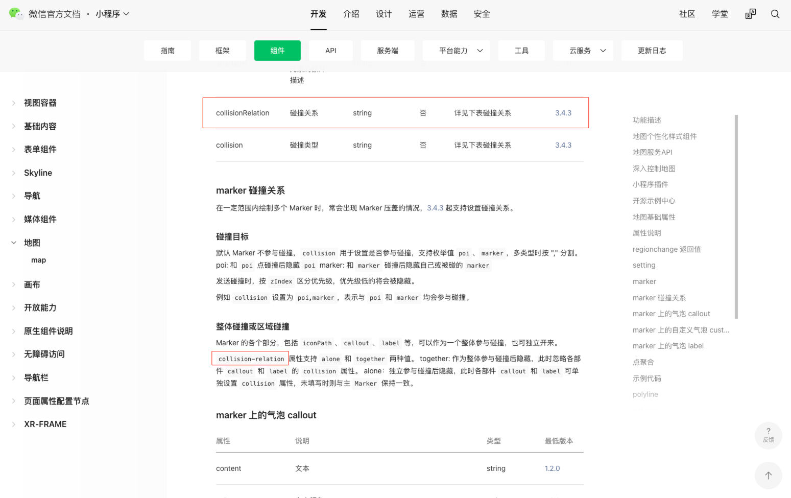 https://developers.weixin.qq.com/miniprogram/dev/component/map.html#marker-%E7%A2%B0%E6%92%9E%E5%85%B3%E7%B3%BB