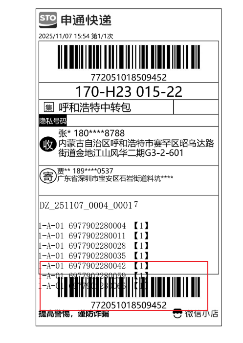 您好,关于快递单号的问题可以参考这个文档:微信小店「电子面单操作」使用指南