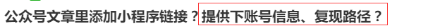 公众号文章里添加小程序链接?提供下账号信息、复现路径?