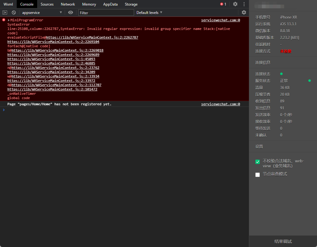 line:25108,column:2262787,SyntaxError: Invalid regular expression: invalid group specifier name Stack:[native code]