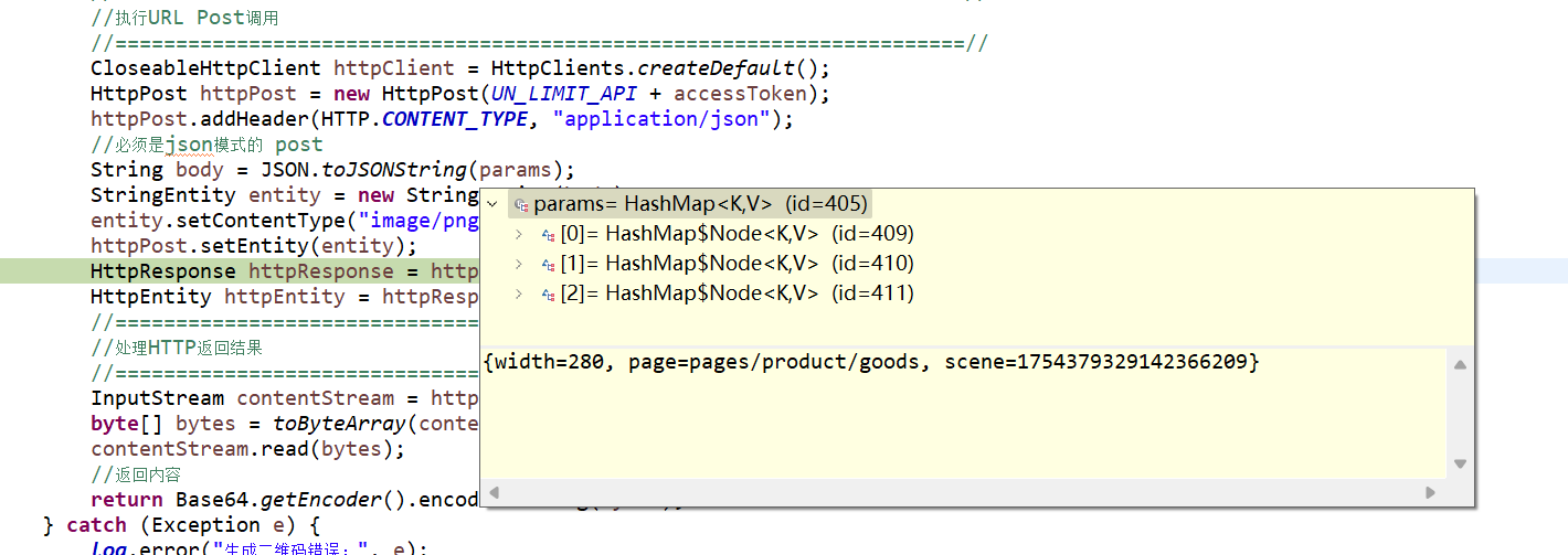 通过java 获取不限制二维码 请求参数 {width=280, page=pages/product/goods, scene=1753980128214491138} 返回无异常 但是读取出来的二进制图片 时好时坏 无法生成图片
