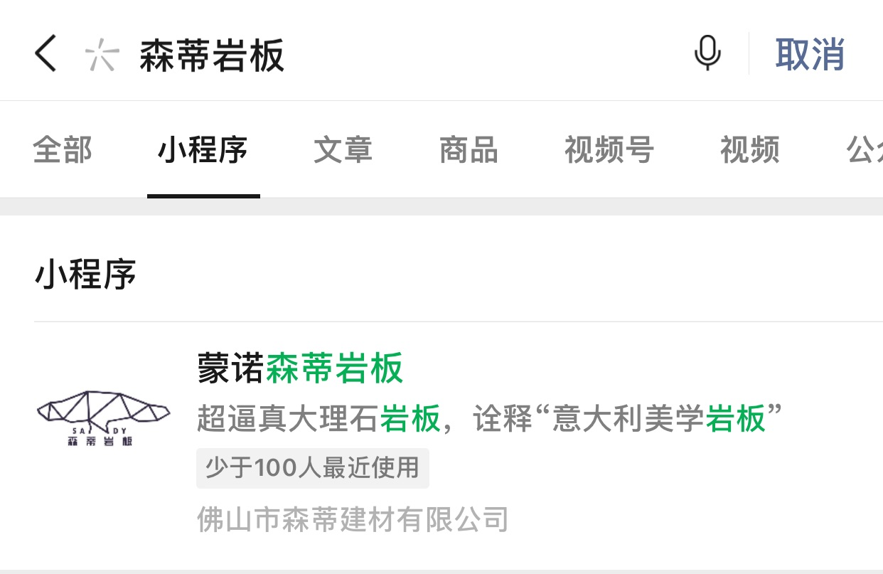 我的小程序是“蒙诺森蒂岩板”。在微信下拉搜索小程序 搜索“森蒂岩板”没有小程序搜索结果。 只能有搜索“蒙诺岩板”“蒙诺森蒂”才会出现结果。 但是我客户的搜索频率词是“森蒂岩板”, 请问我该如何处理?