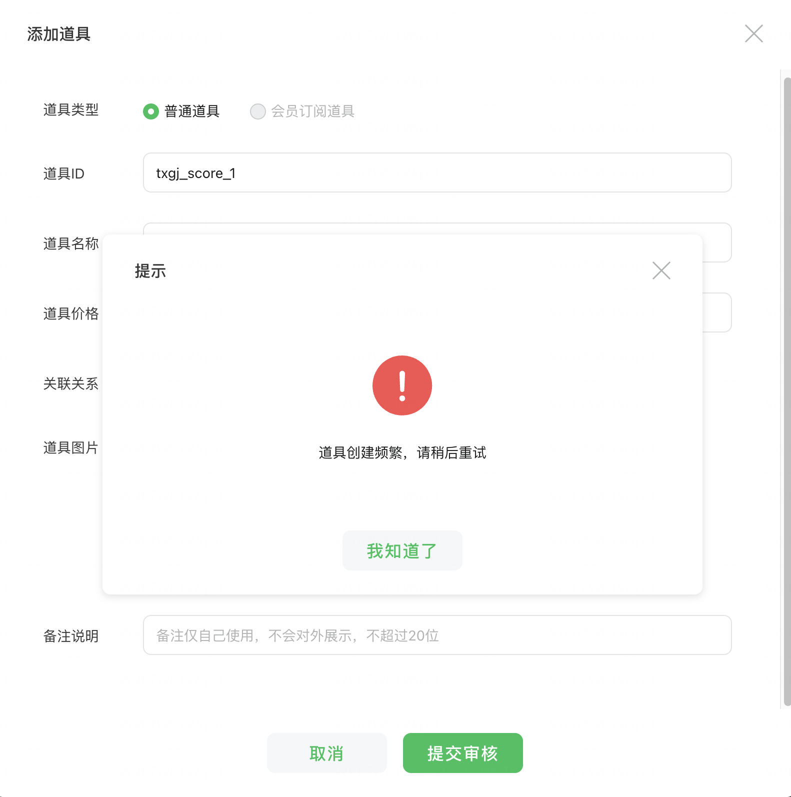 小程序openId:wx0fb28cd0a069a338 第一次创建出现这个,切换了浏览器也是这样,等了半小时创建还是提示这个。登录别的小程序创建发现是正常的,唯独这个小程序无法创建虚拟支付里的道具,这是怎么回事,请官方人员帮忙看下