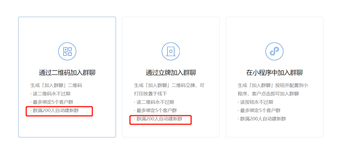 客户群人数上限500人,扫码可加入200人,另外300需手动邀请。