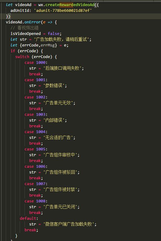 部分用户微信无法打开视频广告,点击视频广告后显示以下代码