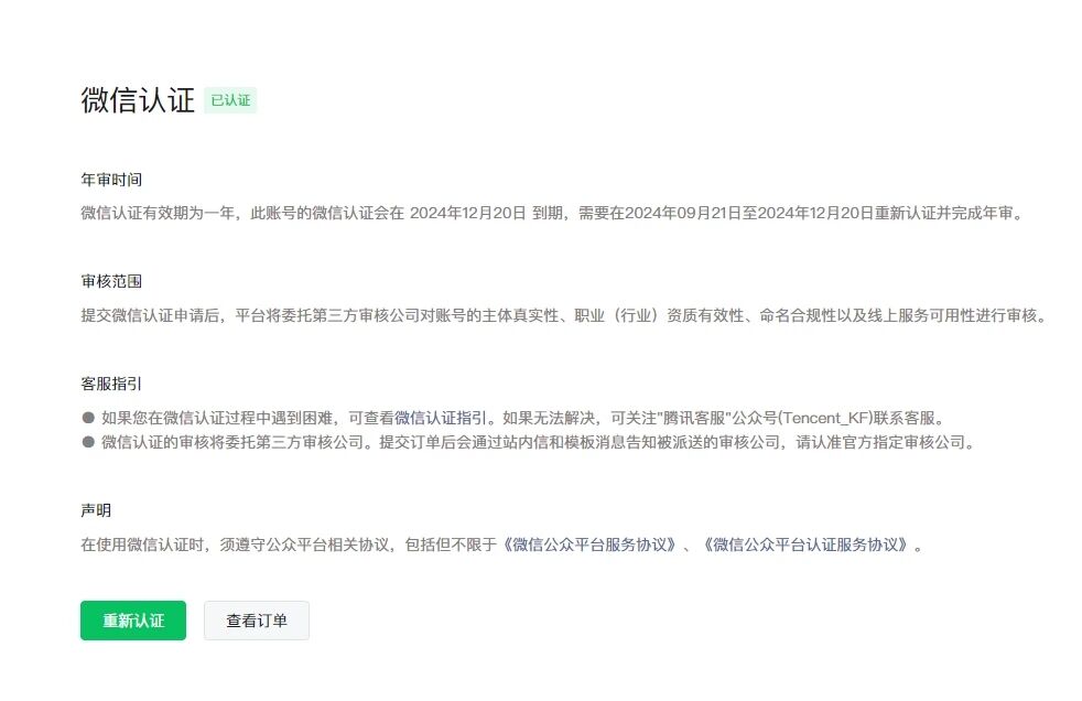 2.假设当前已认证,认证到期时间为t,重新发起认证并审核通过后,到期时间为“t+365天”