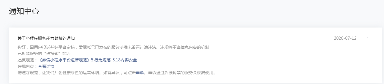 提示另一个版块"微友圈"违规问题!现已下架版块并删除内容!发现无申请入口了!