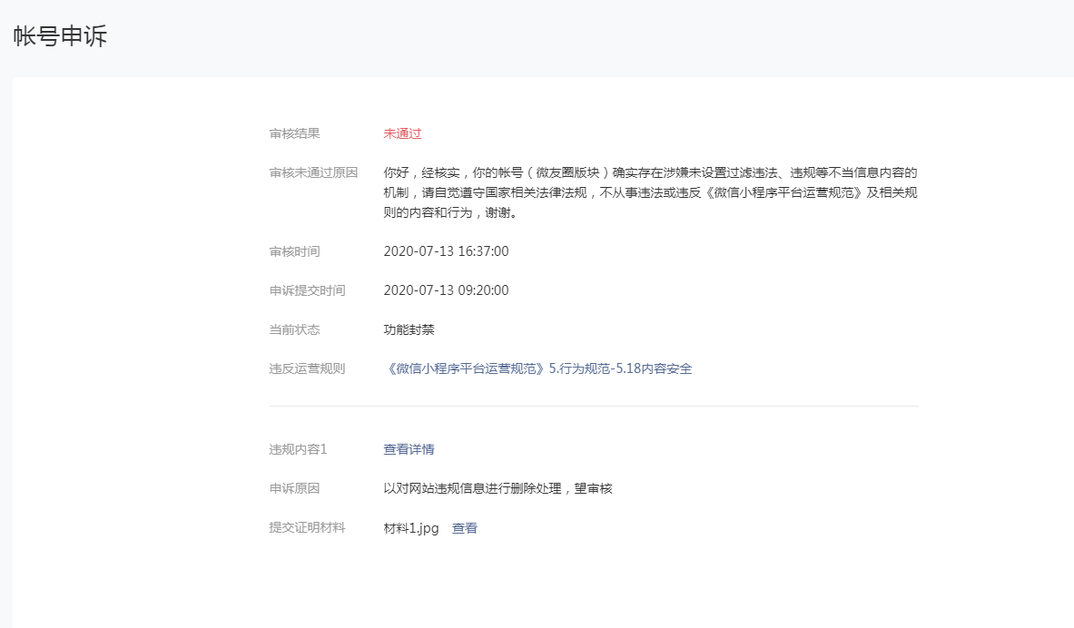 已按照要求整改网站审核机制,并删除违规内容,提交申诉后,未通过!