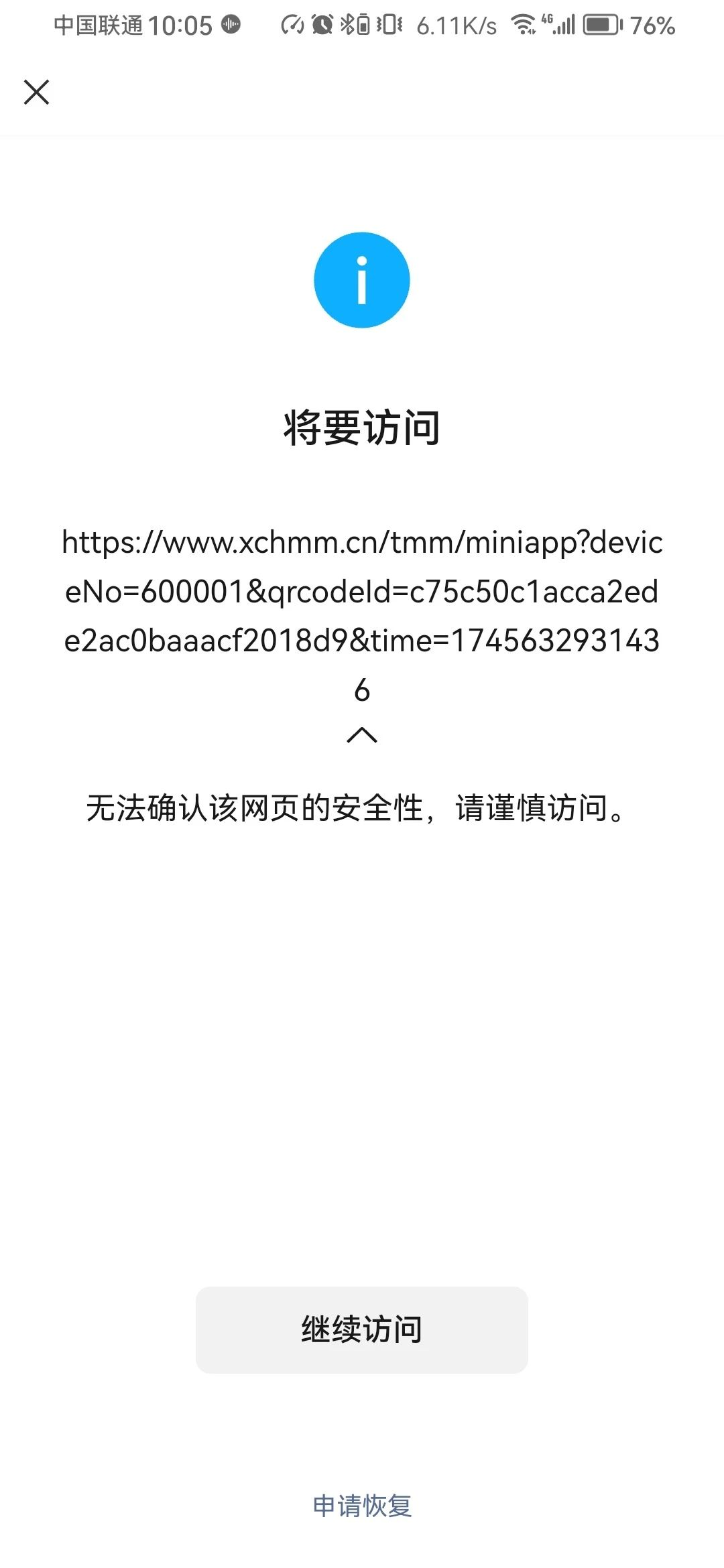 微信扫一扫二维码后,提示非微信官方网页,请确认是否继续?