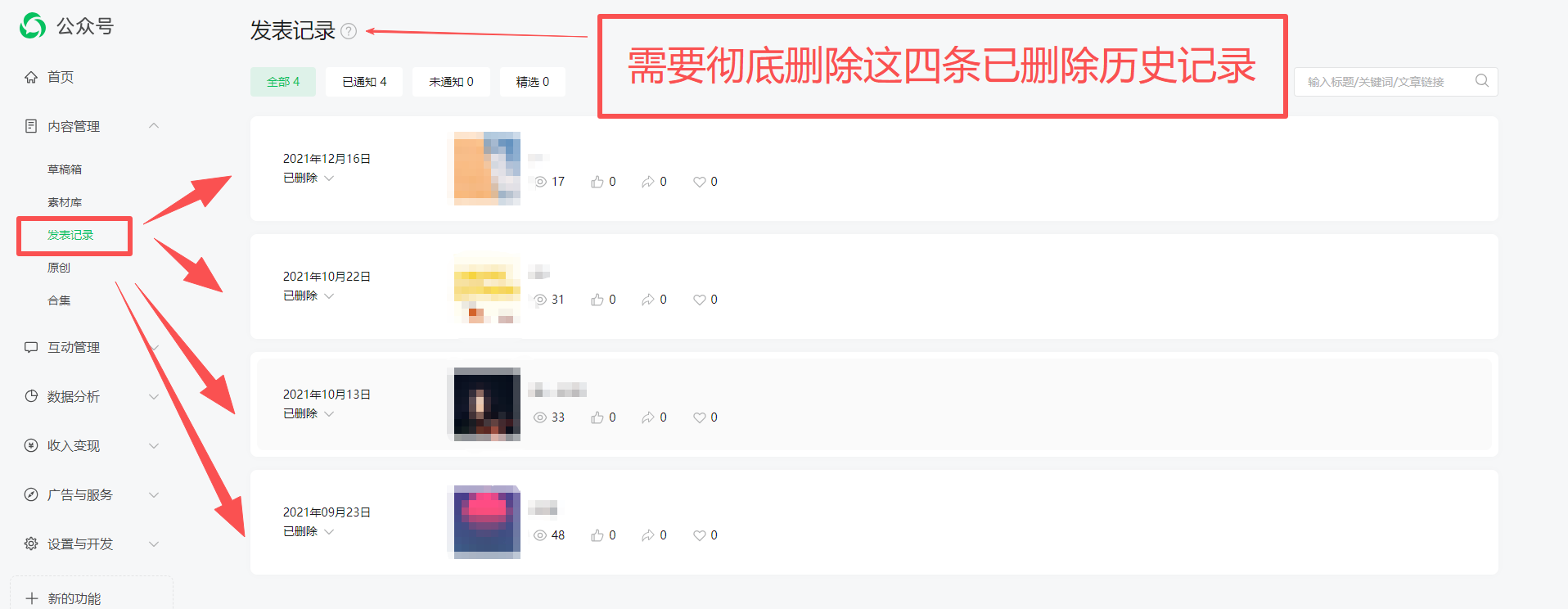 请问怎么操作来彻底清空“已删除”的这4条记录?