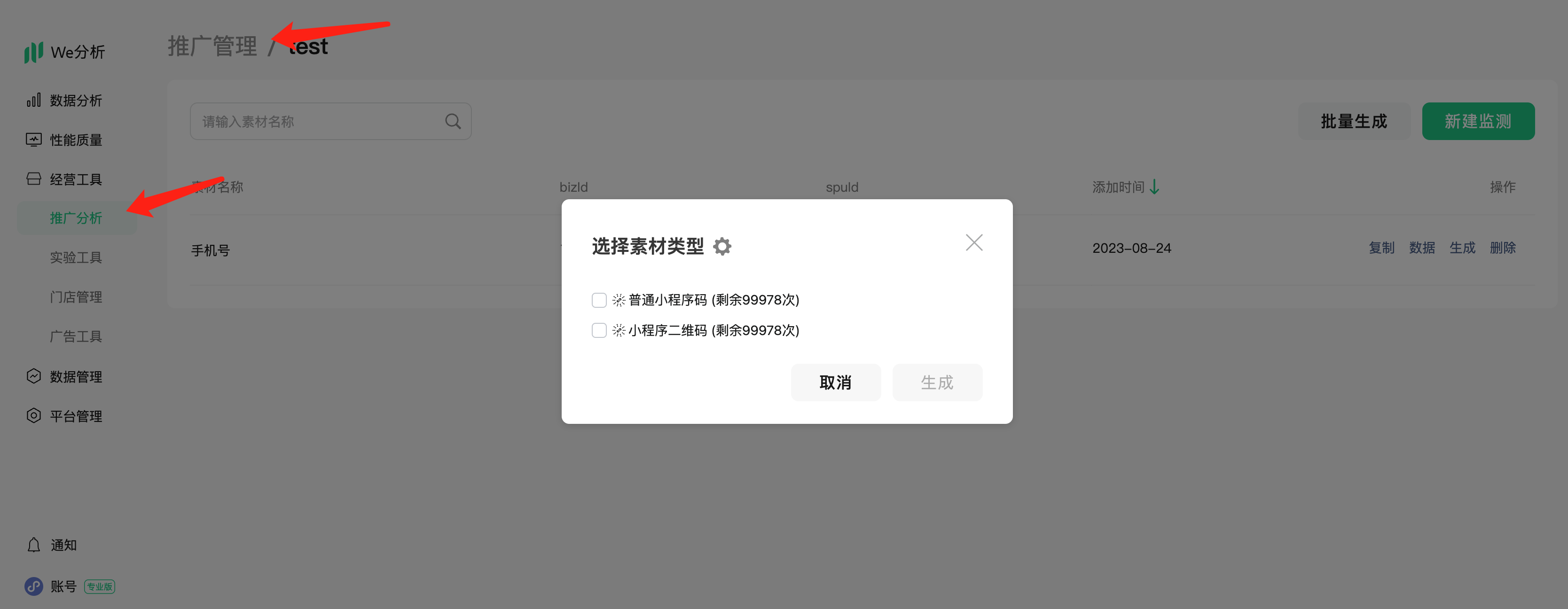 你好,可以试试we分析的推广分析的功能,可以精确监控到每次扫码的情况,也有相应的统计