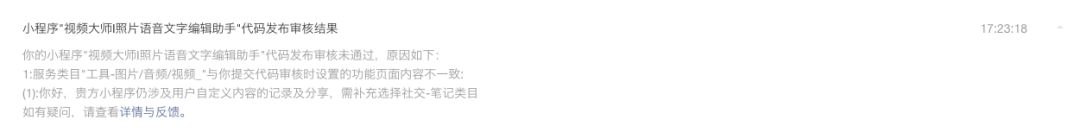 答复:上一版可能是代码没有删除干净,现在的1.8.4已经删除允许用户自定义,保存和分享的功能,目前小程序主要功能为展示我们视频工作室设计海报、官网和客服电话。不涉及任何的社交类目。