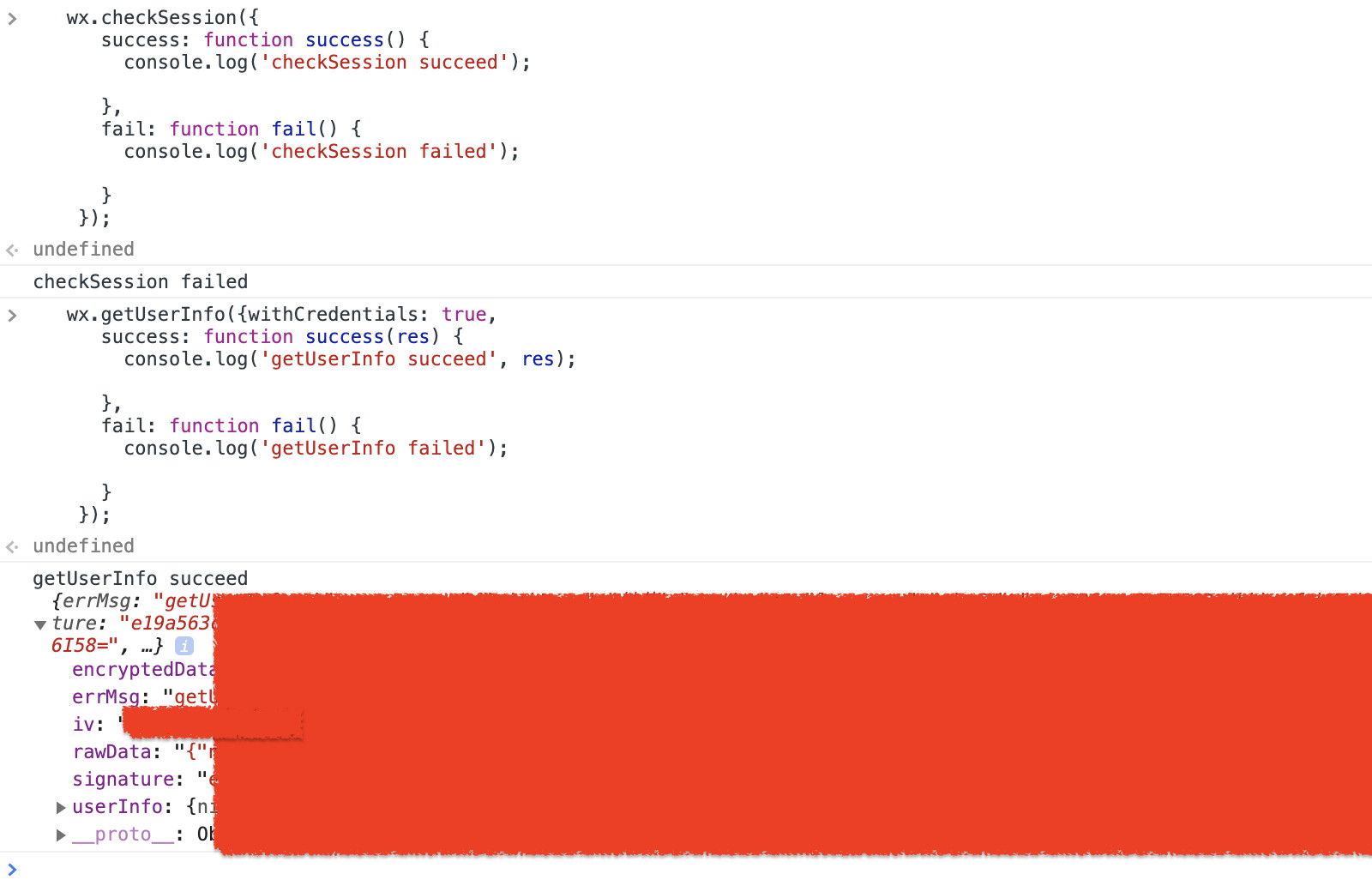 在登陆态失效(由checksession返回 false确定)时, 请求getuserfinfo接口,传入参数 withCredentials = true, 返回结果里仍然包含iv信息