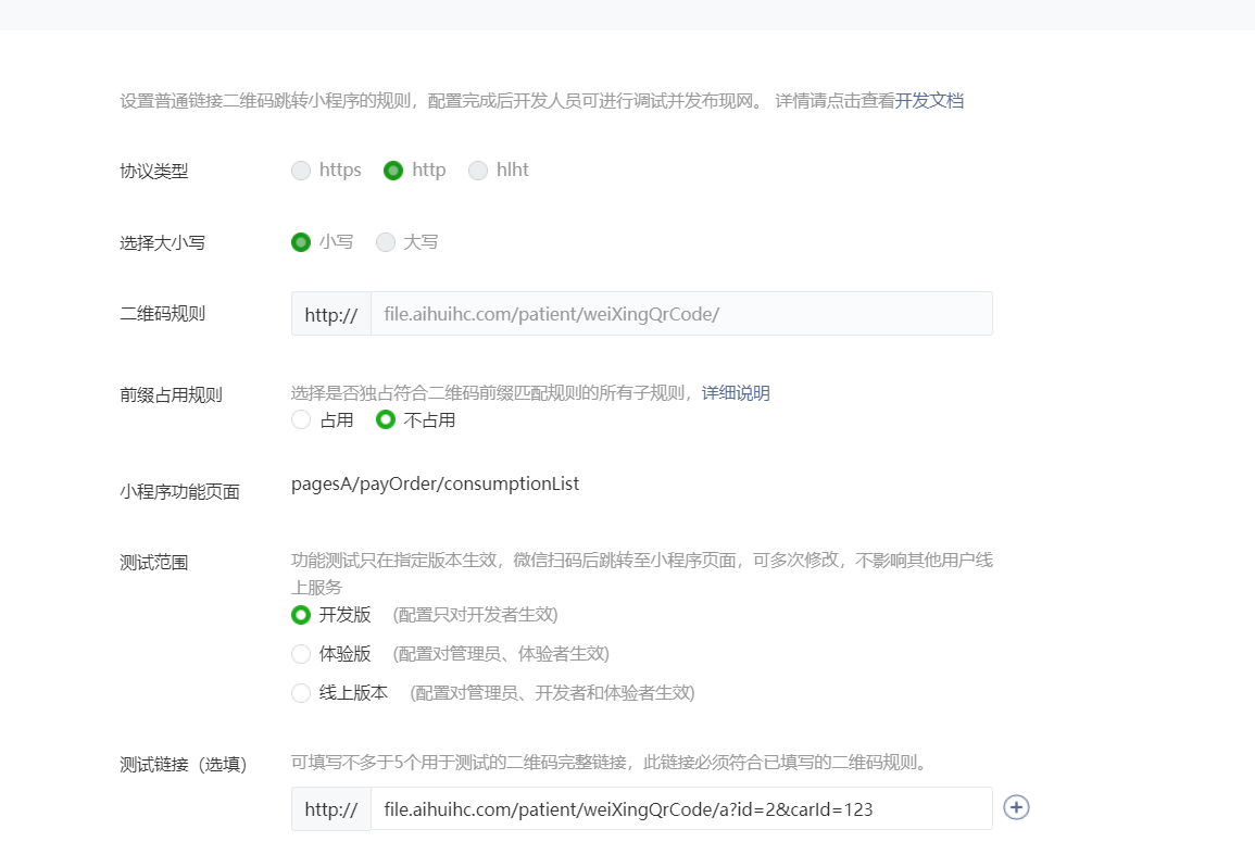 二维码就是完整路径是 http://file.aihuihc.com/patient/weiXingQrCode/a?id=2&carId=123 用草料生成的