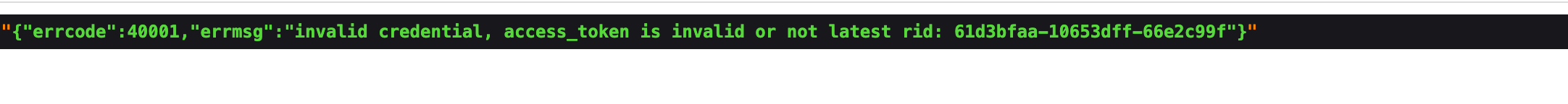 invalid credential, access_token is invalid or not latest rid: 61d27ec9-7b74d49b-6407fece
