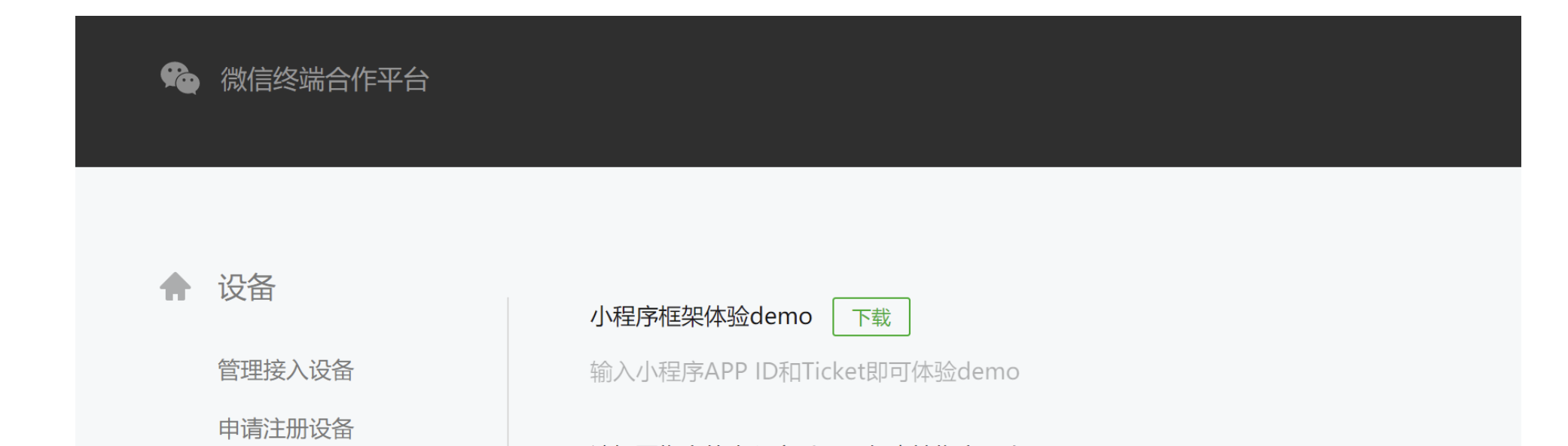 https://developers.weixin.qq.com/doc/oplatform/Miniprogram_Frame/faq.html#%E4%BD%93%E9%AA%8C-demo