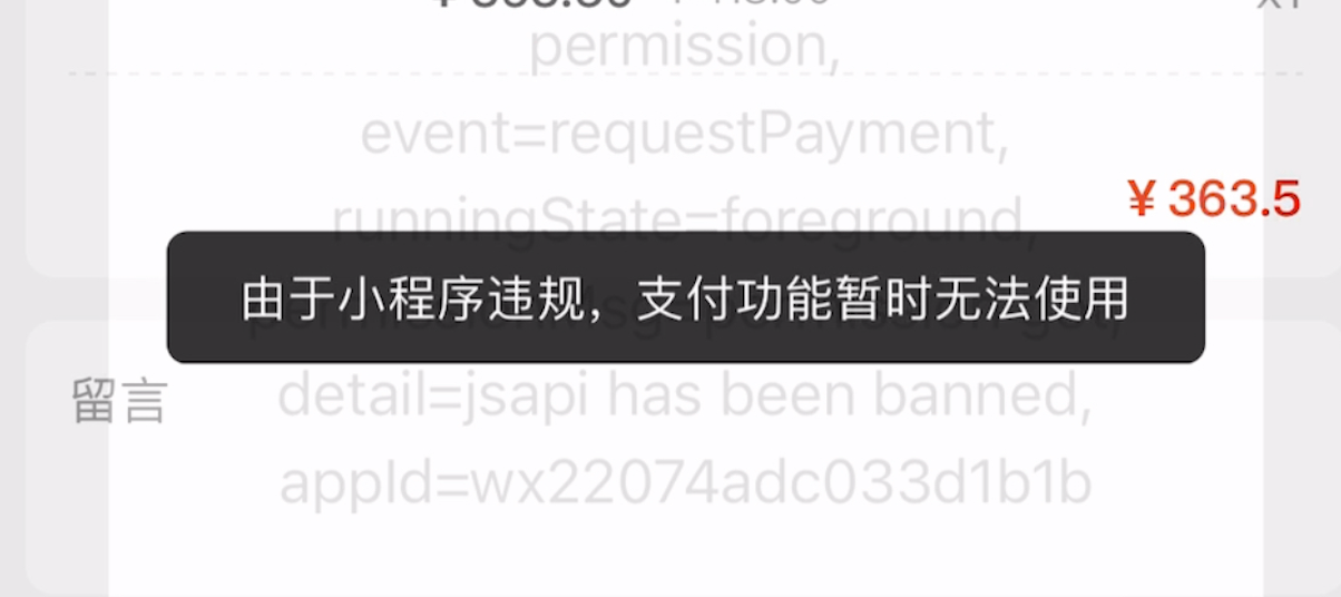 新注册的小程序,还未上架,【由于小程序违规,支付功能暂时无法使用】