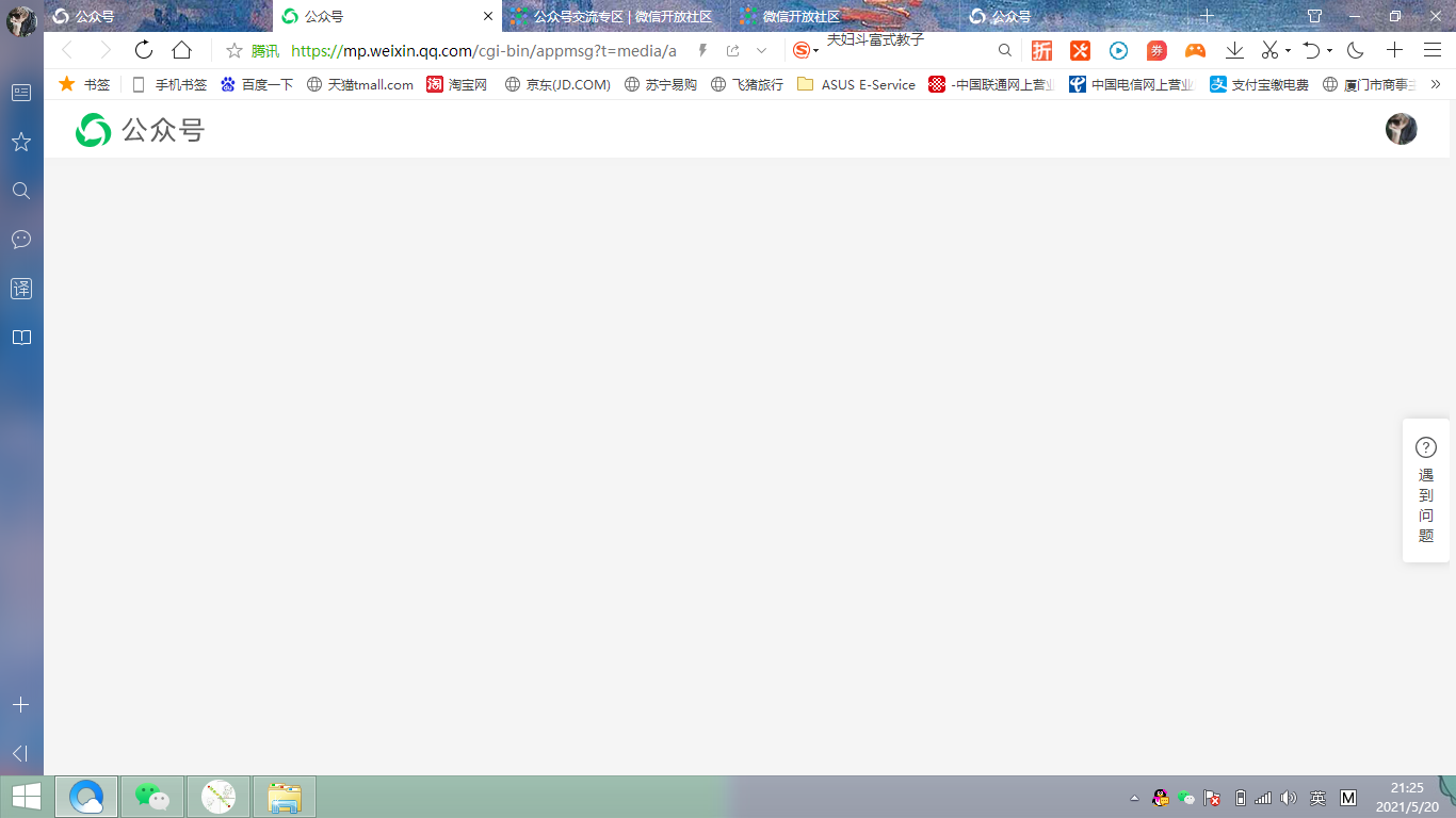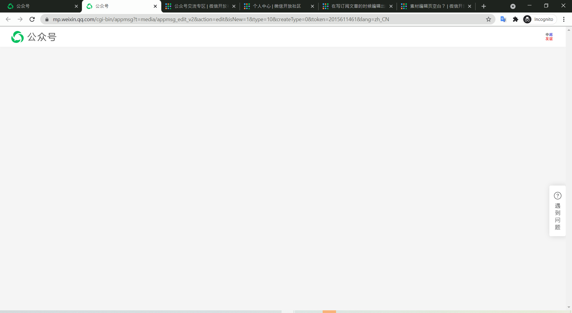 在新的创作里面, 点击:图文消息,文字消息,视频消息 点开都是空白的是什么情况iang?