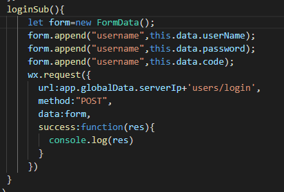 代码如下,执行报FormData is not defined的错,后来才知道小程序没有FormData对象,因为后端框架的原因,后端设定的登录接口只能接受FormData格式的数据,不能接受JSON对象的数据,小程序怎么样才能生成FormData对象呢?