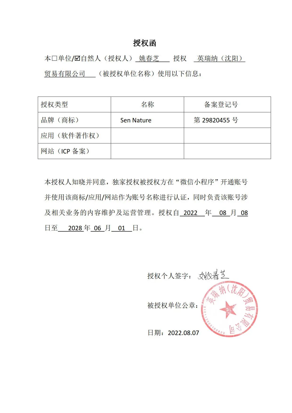 名称:SEN NATURE 森然原生态护肤,商标:SEN NATURE 已经上传了商标注册证和授权书,麻烦帮忙看看 谢谢~