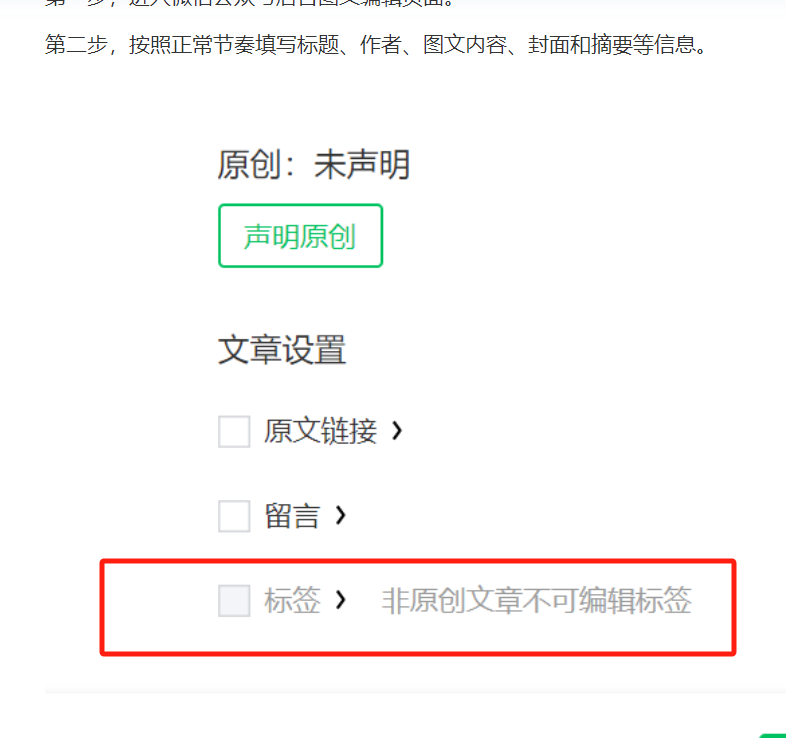 原创内容才可以添加标签。内容互动 往下拉,然后有一个菜单命令标签。