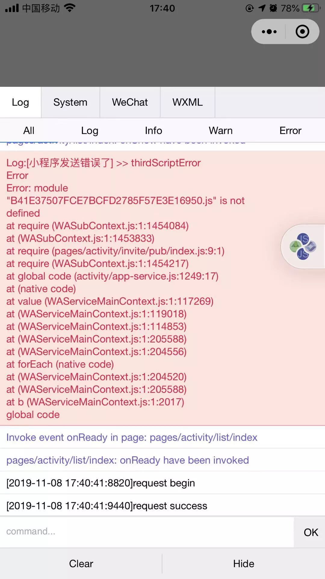 小程序中有做分包,使用开发者工具上传的体验版,分包的页面会直接白屏,我换回旧版本的开发者工具就正常,然后再装回最新的稳定版也正常,但是过段时间就又不正常了,报错的日志如下