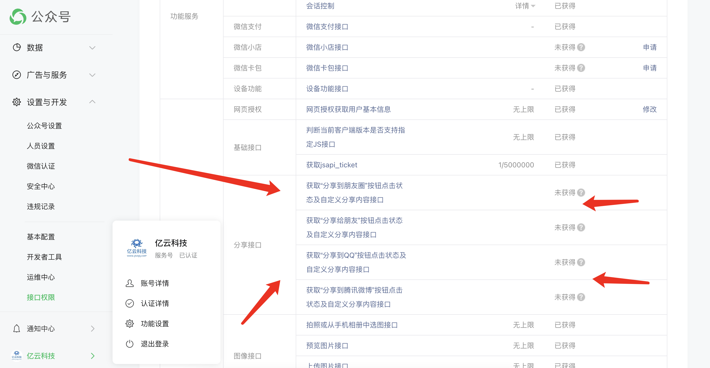 公众号是花钱认证的服务号,但是下面的图片显示我的分享接口API确说我没有认证。自己看图片吧,我都不想说什么。