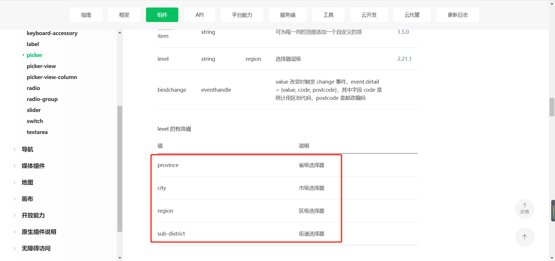 https://developers.weixin.qq.com/miniprogram/dev/component/picker.html