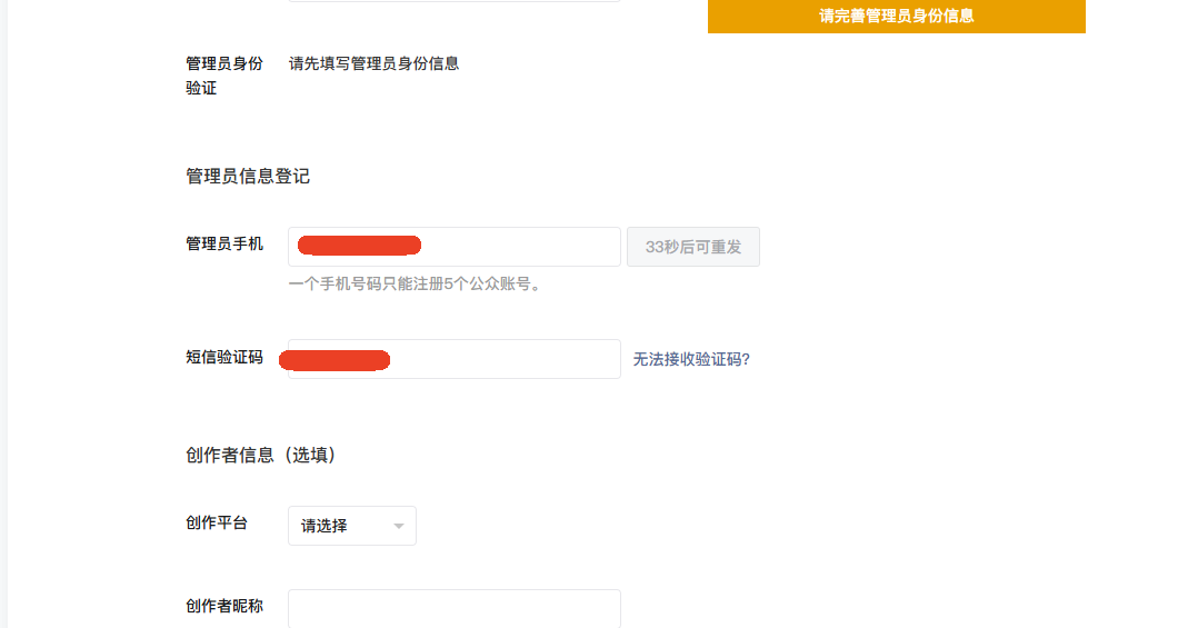 如图所示,无法进行注册流程。管理员身份验证处是空白的。始终无法进行注册。