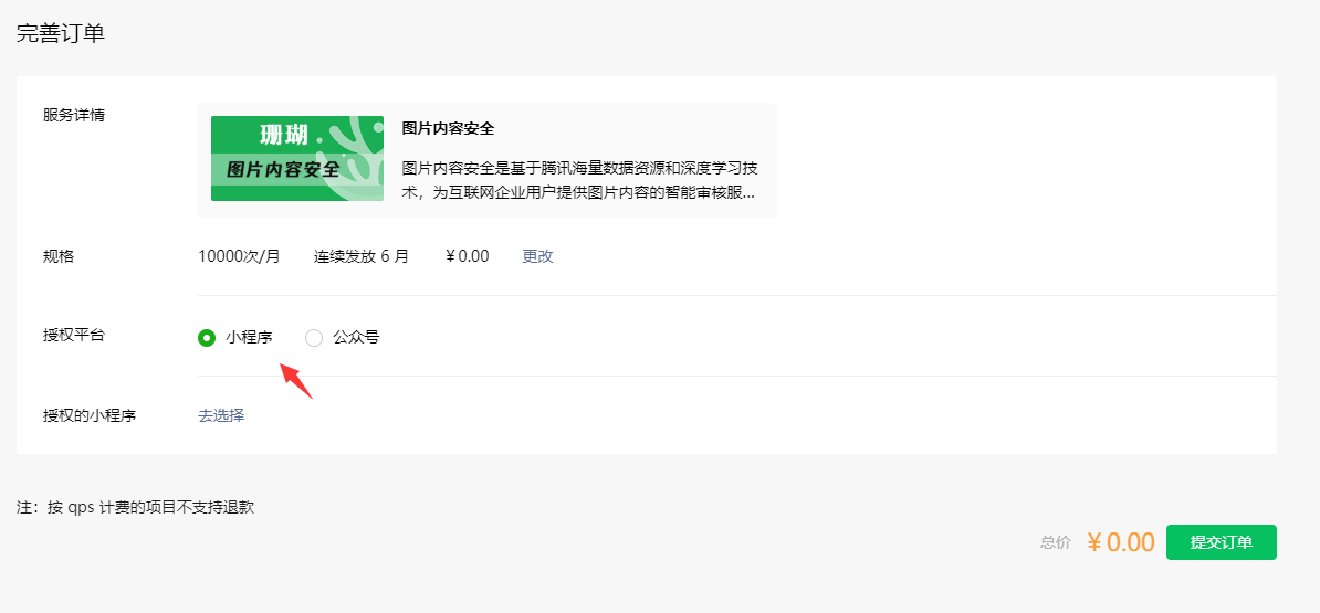 是不是你接入的时候,选择的就是小程序,没有创建公众号订单。